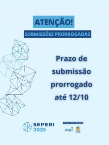 Para o formato de Mostra de Iniciação Científica: não será necessário preparar um banner físico, o apresentador poderá utilizar o banner digital (apresentação em tela/slides/notebook/tablet). É fundamental ressaltar, contudo, que todas as apresentações nesta categoria no V SEPERI serão realizadas de forma presencial, garantindo o debate direto e a interação essencial entre os participantes. As apresentações de trabalhos completas poderão ser realizadas tanto virtual, quanto presencial, com prazo para envio do trabalho completo até 10/03/2026. Ambos trabalhos, serão publicados em nossos anais e em nosso site.