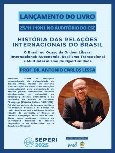 “História das Relações Internacionais do Brasil”, com ênfase no tema: “O Brasil no Ocaso da Ordem Liberal Internacional: Autonomia, Realismo Transacional e Multilateralismo de Oportunidade”.